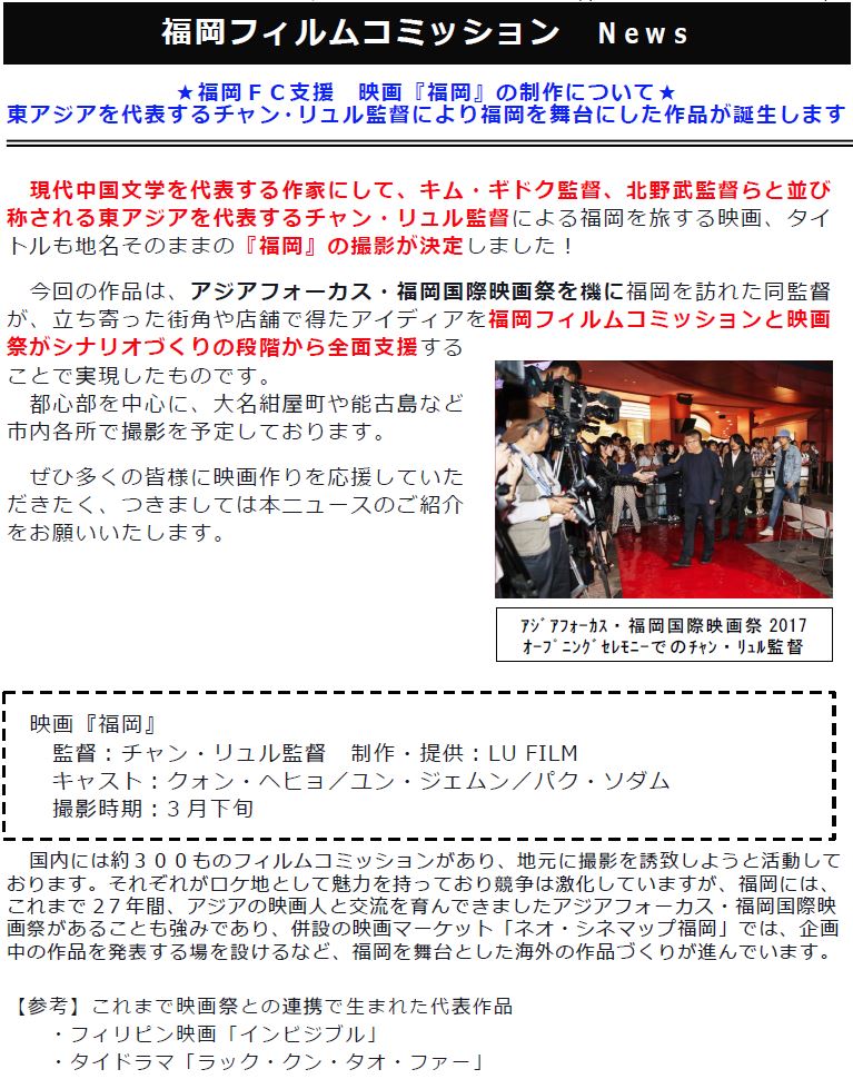 今後とも,素晴らしい作品を誘致するとともに,映像を通じ,福岡の魅力を世界に届けてまいります。