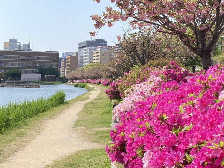 舞鶴公園は、市の中心天神から歩いて15分のところにあります。春は様々なお花が、秋には紅葉が園内をいろどり、写真撮影でも人気のスポットとなっています。